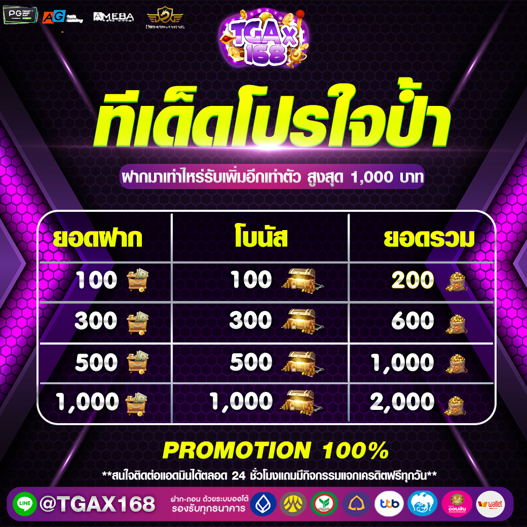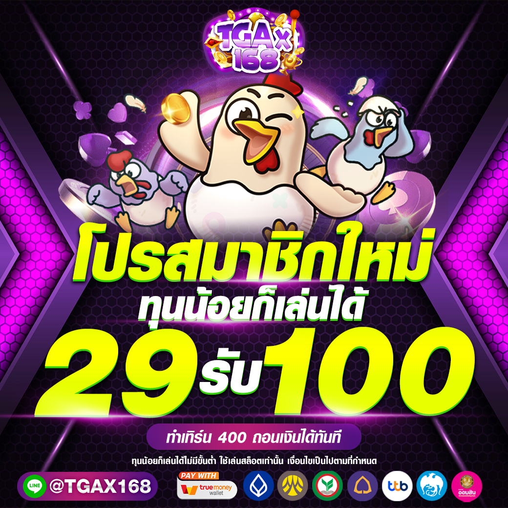 ฝากยอด 29 บาทเท่านั้นรับโบนัส 71 บาทรวมเป็น 100 บาท