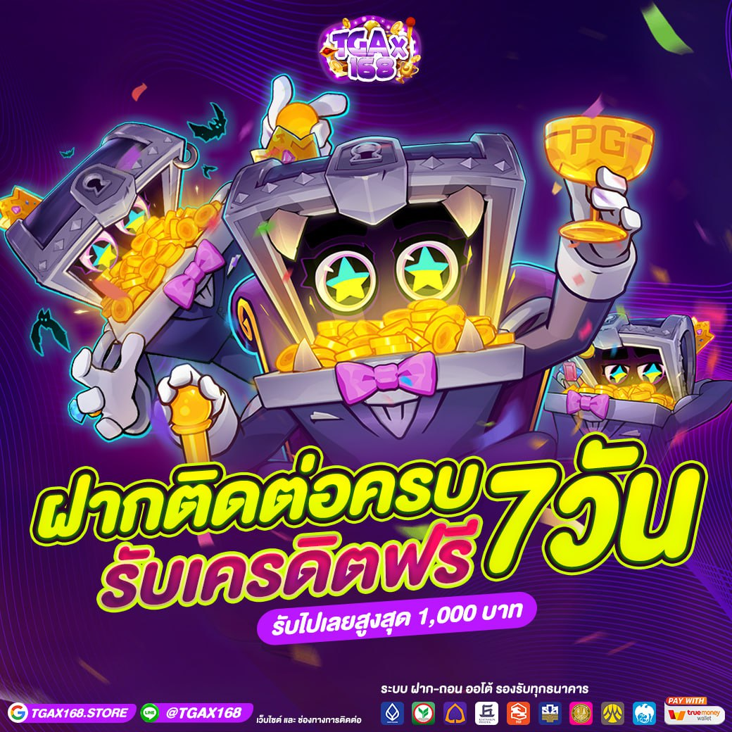 ฝากติดต่อกันครบ 7 วัน ฝากขั้นต่ำ 100 บาทขึ้นไป วันที่ 8 รับโบนัสฟรีทันที ทำเทิร์น 3 เท่า ถอนสุด 10 เท่า **หมายเหตุ ในแต่ละวันต้องมียอดฝากมากกว่า 100 บาท (หลาย ๆ ยอดฝากรวมกันได้ และไม่ได้รับโปรอื่นๆในยอดฝากนั้นๆ ) ต่อเนื่องจนครบ 7 วัน